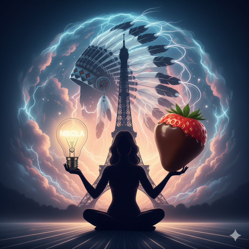 Deceptions sing for today, just as in my day. The musical of tomorrow has been scripted in Lila’s libretto. What I know and did for the world of tomorrow in engineering, she has done in choreograph and song. Cue Golden Earring. Radar Love plays long and laugh with my footprints in the sand, reaching from the electric of the long, long gone, well beyond the darkness in man’s voodoo, that I tried on your side to illuminate like Lila Ċepa’s remote view, and her fate beyond my belief, the magnanimity of the great Rosebud Thief, who steals the night with Black Icarus. An “Oh Henry Leaf,” hidden from all of us, painted with magic and Deja vu grief, with new colors that gush, when the electric is turned off. Caught in the darkness in disbelief. [NIKOLA TESLA in spiritus. The Real Lightning Thief resonating with the Rosebud Thief.]